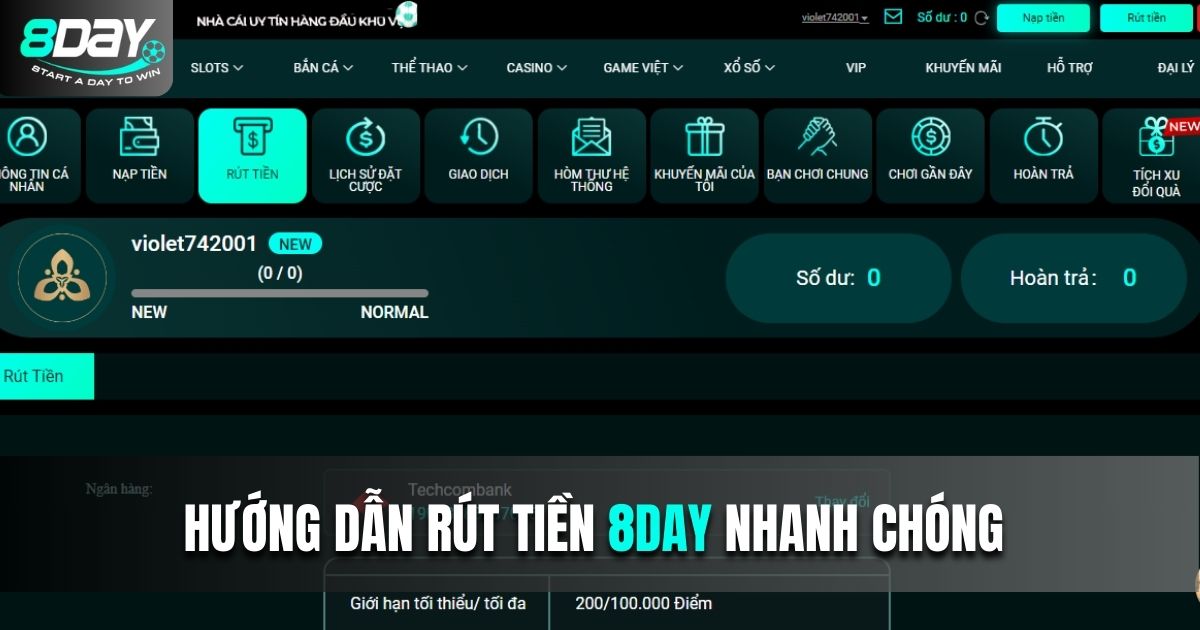 Hướng dẫn rút tiền 8Day về tài khoản chi tiết